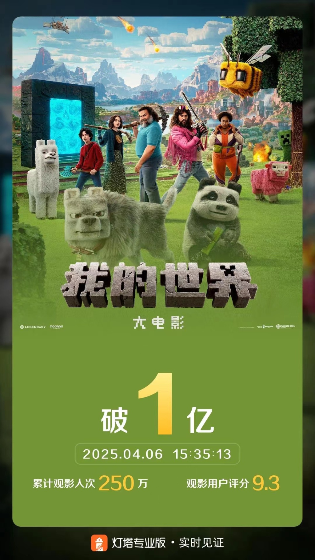 《我的世界大電影》獲得清明檔票房冠軍,也是清明檔唯一一部票房破億的電影。