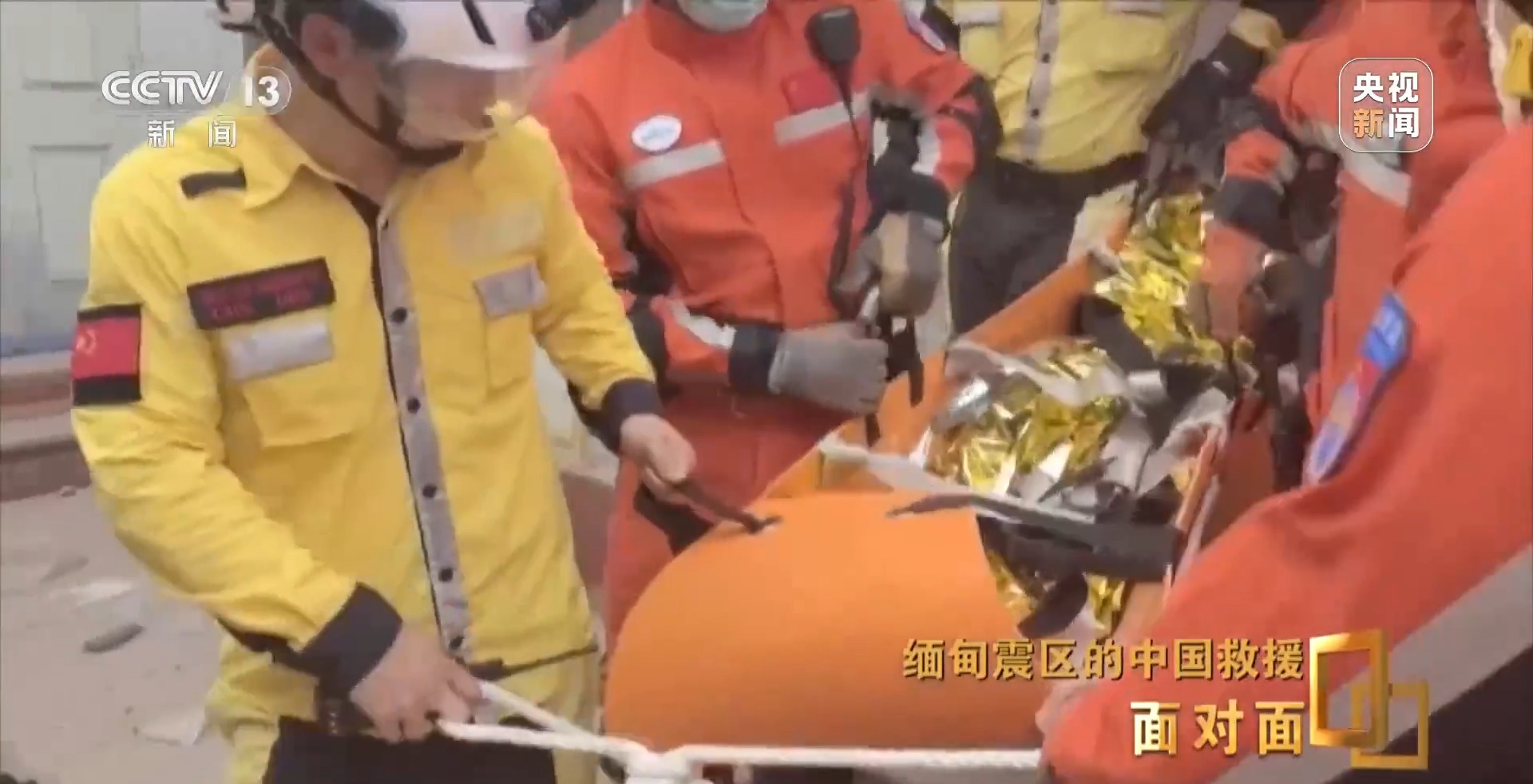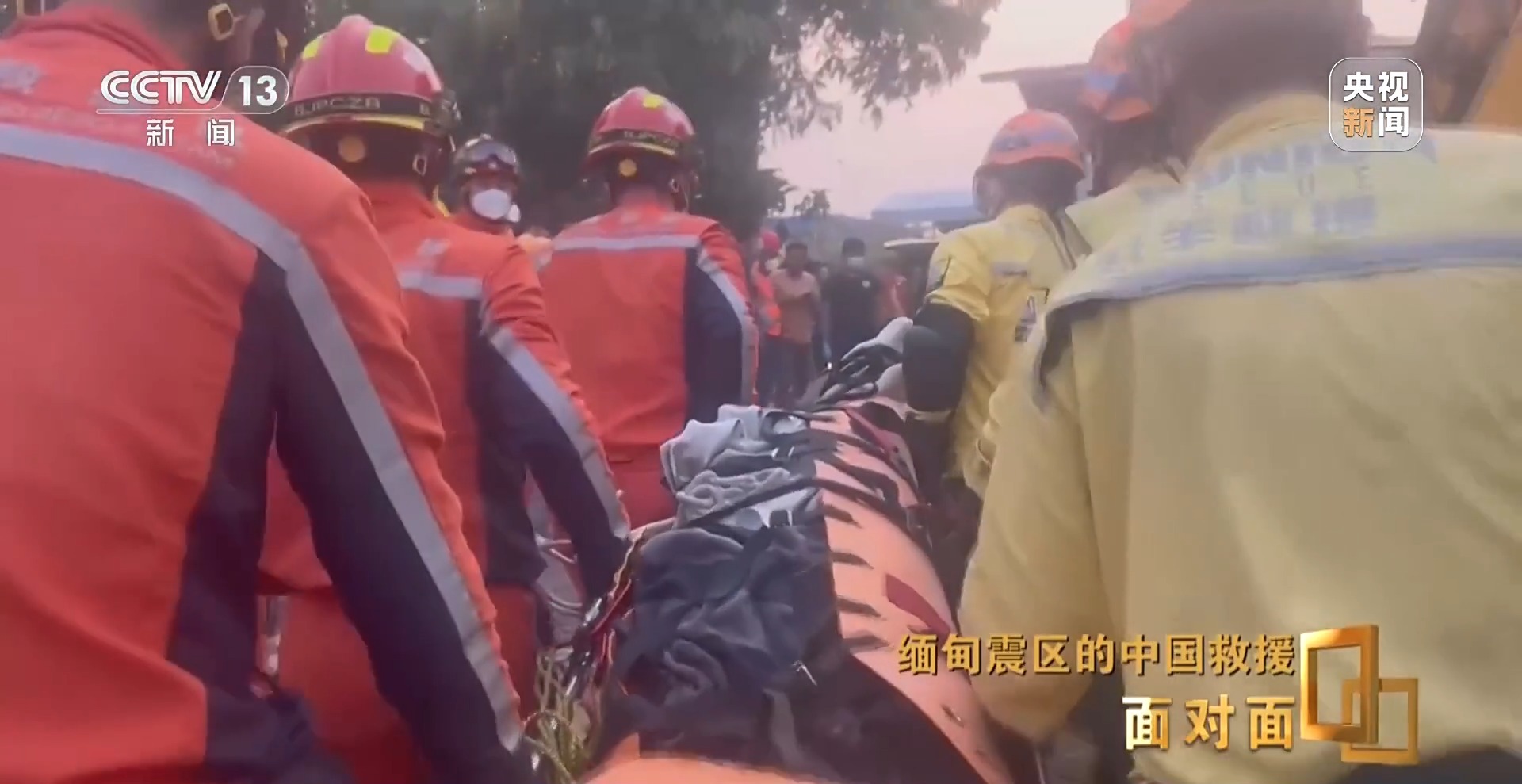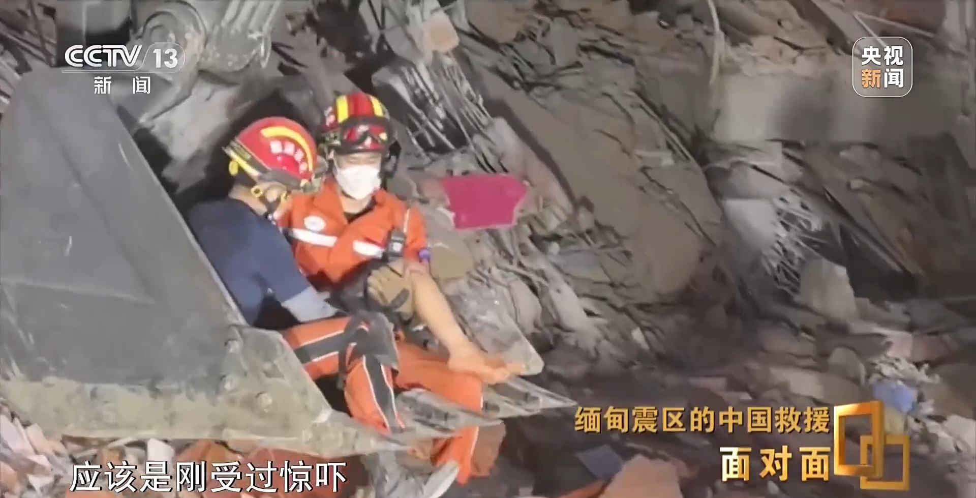 *總枱央視記者 張騰飛:*在3月31日當地時間凌晨的零點四十分,我們現在是在曼德勒市的長城飯店救援點,在現場我們看到,經過5個多小時的努力,中國救援隊是在這片廢墟中成功營救出一名女性,目前她的生命體徵良好,此前她在這裏被困超過60個小時,這也是中國救援隊抵達受災最嚴重的曼德勒市成功營救出的第一名倖存者。