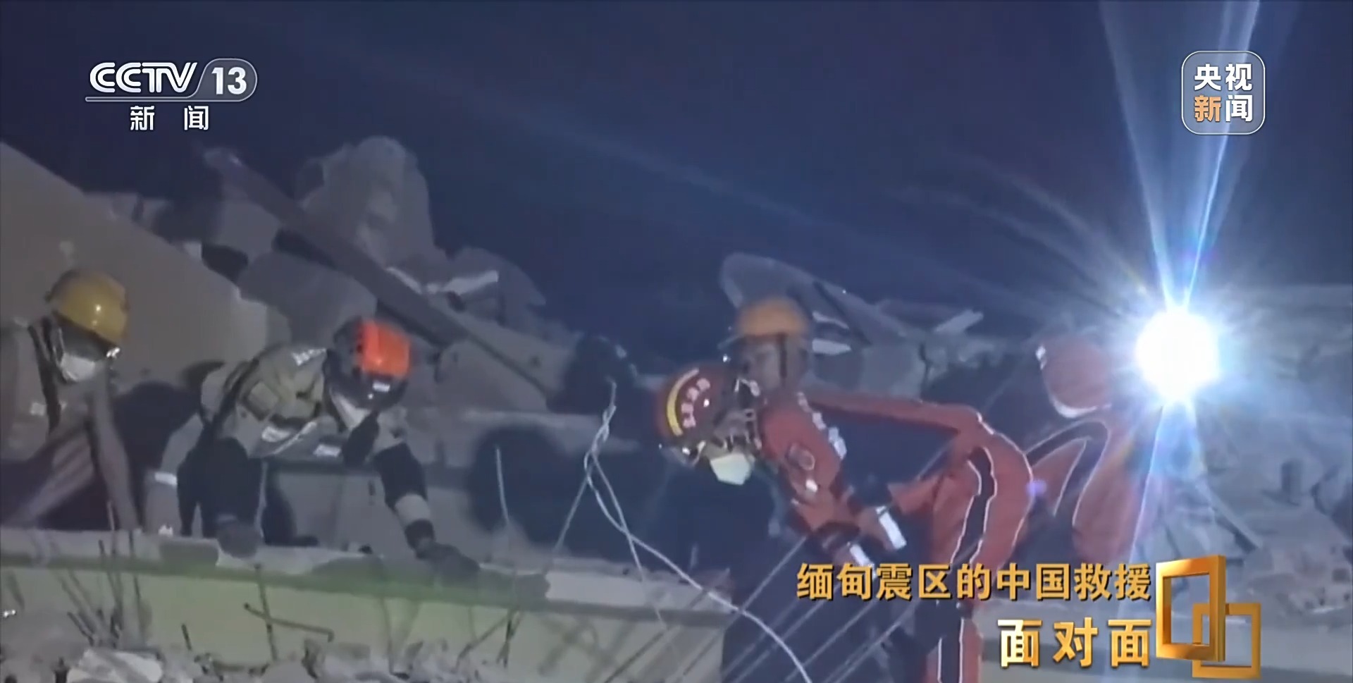 緬甸當地時間4月3日19時,利用救援間隙,《面對面》通過網絡連線的方式採訪了中國救援隊隊長趙明。