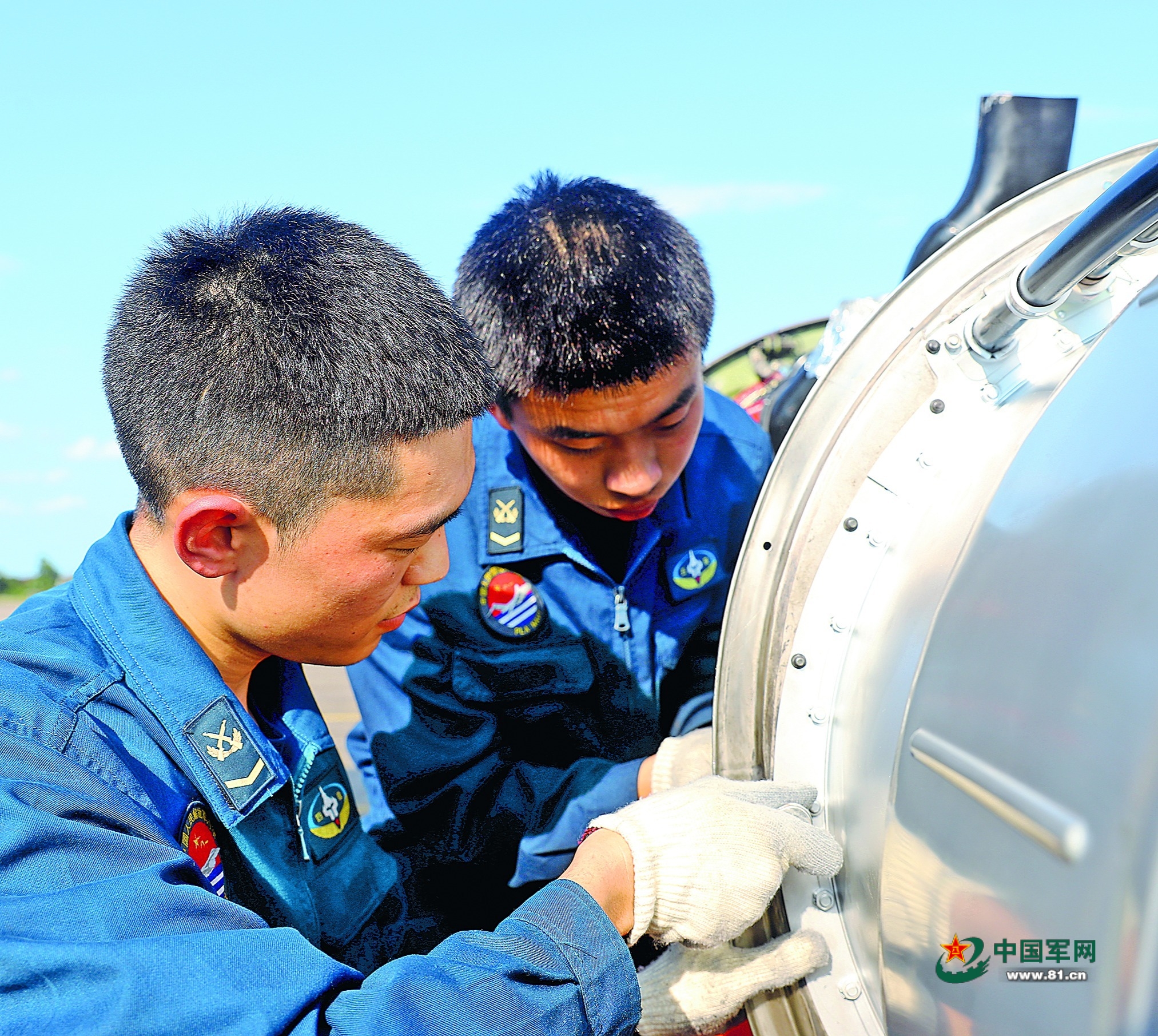 採訪結束時,一架架戰鷹接續呼嘯升空,機務兵精神飽滿,緊張投入新一輪保障作業……