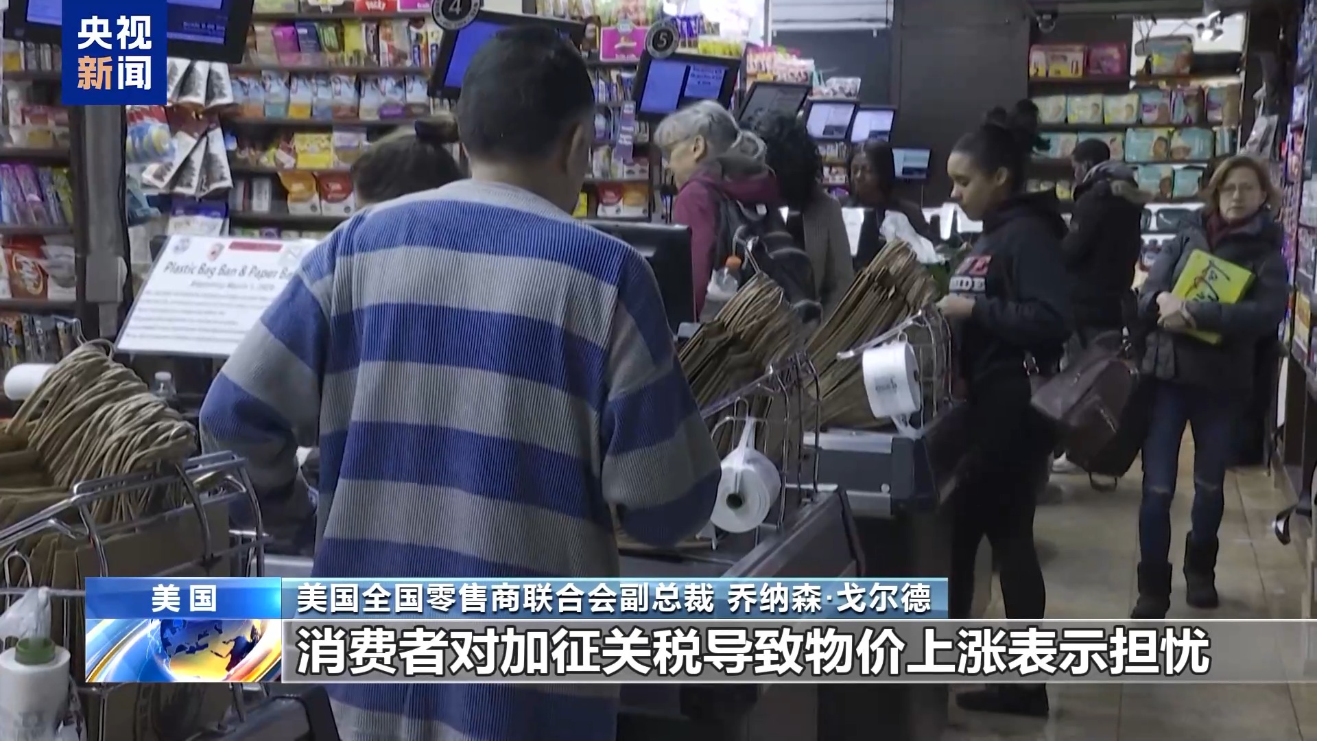 *美國全國零售商聯合會副總裁 喬納森·戈爾德:*他們非常擔心,在過去幾個月裏,我想你已經看到消費者的信心下降了。我們最近做了民意調查,消費者對加徵關税導致物價上漲表示擔憂。在宣佈加徵關税的那一天,在華盛頓特區的大約75家小企業就表示,他們非常擔心自己的生存能力,繼續經營下去的能力,他們必須做些什麼來化解這些成本,他們只能把這些成本轉移給別人。