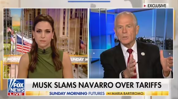 Mediaite新聞網稱,對於主持人的質疑,納瓦羅予以否認,同時完全駁斥了馬斯克對他的批評。