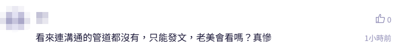 這番言論一出,大批島內網友在有關報道評論區留言質疑。“看來連溝通的管道(渠道)都沒有,只能發文,老美會看嗎?真慘”。