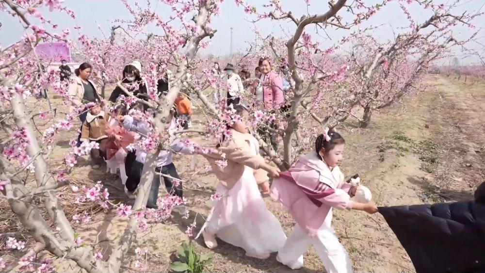 在山東菏澤鄆城縣陳坡鄉,第二屆桃花節吸引大量遊客。上千株桃花爭奇鬥豔,戲曲、舞蹈、歌曲等文藝演出融入桃花元素,為遊客呈現一場視聽盛宴。