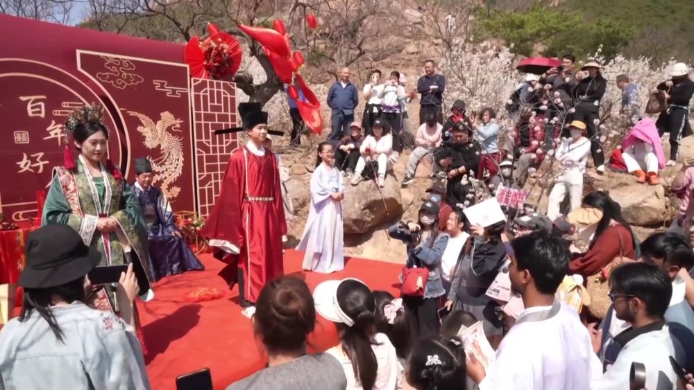 走進山東日照五蓮縣大旺村,數萬株櫻桃花次第開放,遊客們競相拍照留念。以宋代文化為主題的劇本遊,帶遊客體驗宋代服飾、詩詞,感受傳統文化的魅力。