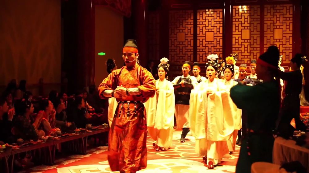 《唐宮樂宴》是隋唐洛陽城景區打造的集行進式唐風演藝、劇本式互動遊戲、沉浸式角色體驗、多元化消費於一體的新文旅產品。與此同時,這裏上演的《天門報時》《神都迎賓》《簪花吟》等精彩演藝,每天都吸引了大量遊客前來體驗打卡。
