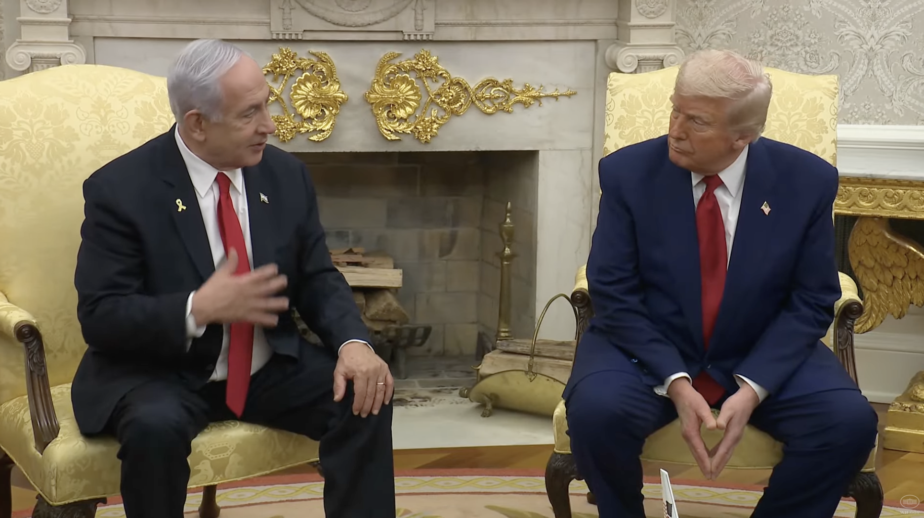 △7日,特朗普與到訪的內塔尼亞胡共見記者。