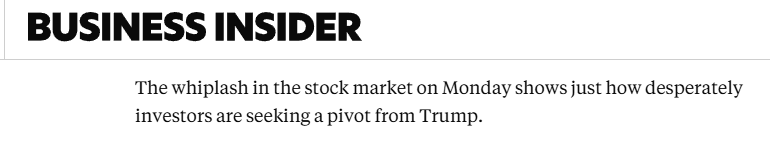 財經媒體《商業內幕》網站則在7日美股因“假消息”劇烈波動後,給出評價:週一股市的劇烈波動表明,投資者正在多麼迫切地尋求特朗普的轉向。