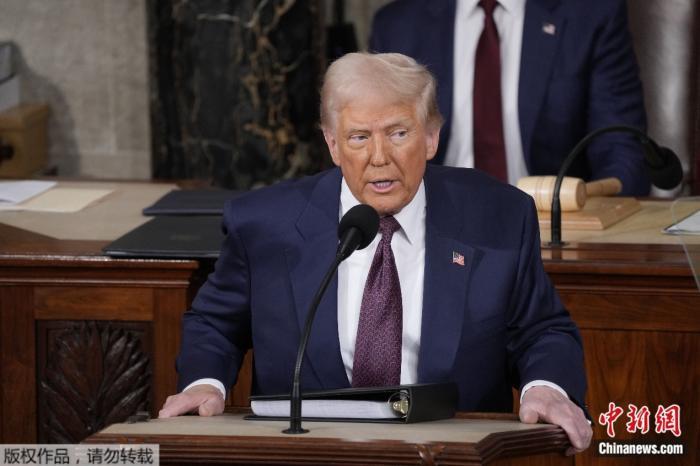 當地時間3月4日,美國總統特朗普在美國國會發表演講。