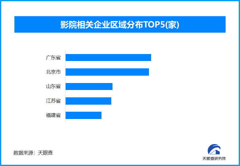 從區域分佈來看,廣東省、北京市、山東省影院相關企業數量位居前列,分別為超過1萬餘家、9700餘家和5400餘家。