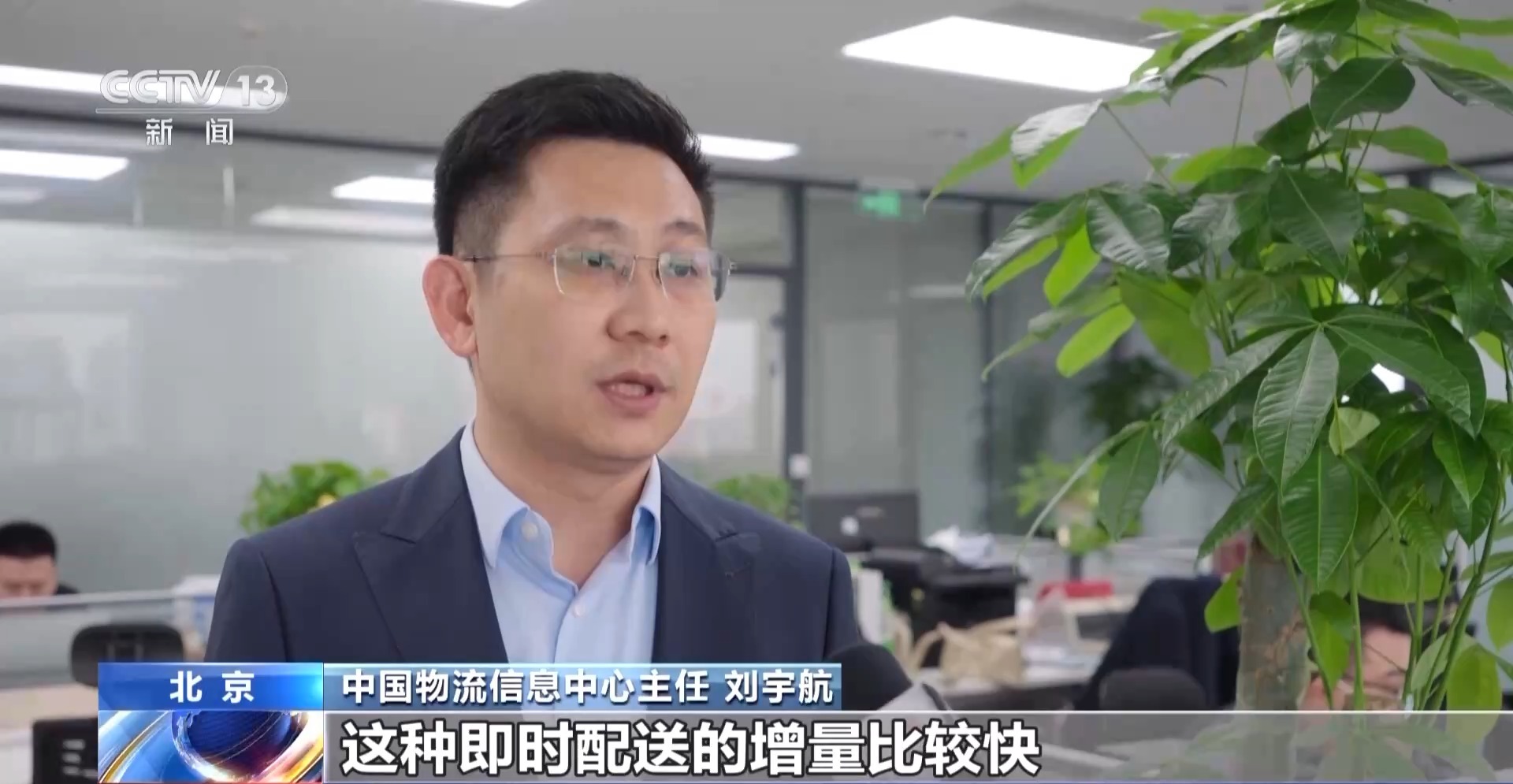 *中國物流信息中心主任 劉宇航:*現在整個圍繞電商板塊的即時配送的增量比較快,反映出居民消費活力進一步加強,同時也反映出整個電商物流的供給能力和服務能力逐步提升。