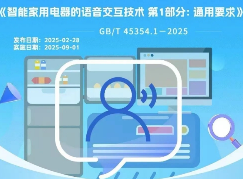 【環球網科技綜合報道】市場監管總局(國家標準委)近日批准發佈《智能家用電器的語音交互技術 第1部分:通用要求》(GB / T 45354.1—2025)國家標準,將於2025年9月1日正式實施。