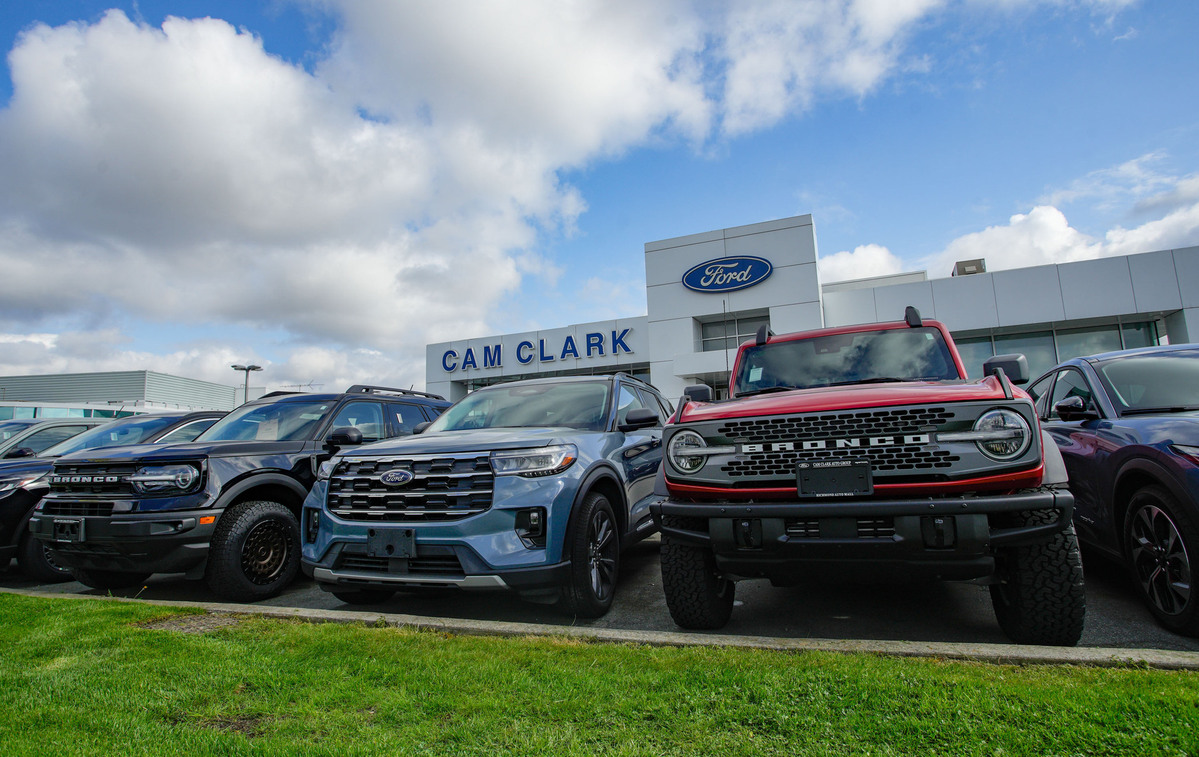 4月3日,車輛陳列在加拿大温哥華的汽車經銷商店面外。 加拿大總理卡尼3日宣佈,對美國汽車關税採取反制措施,對等徵收25%關税。(圖片來源:新華社)