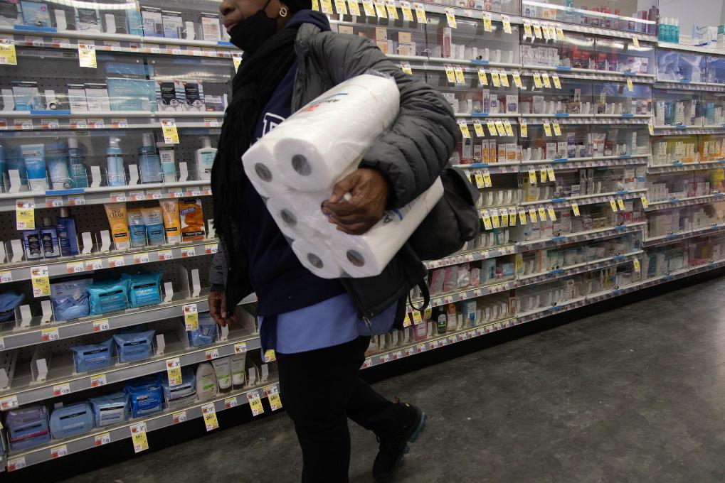 3月28日,顧客在美國紐約市一家藥房購買衞生紙。新華社發(郭克攝)