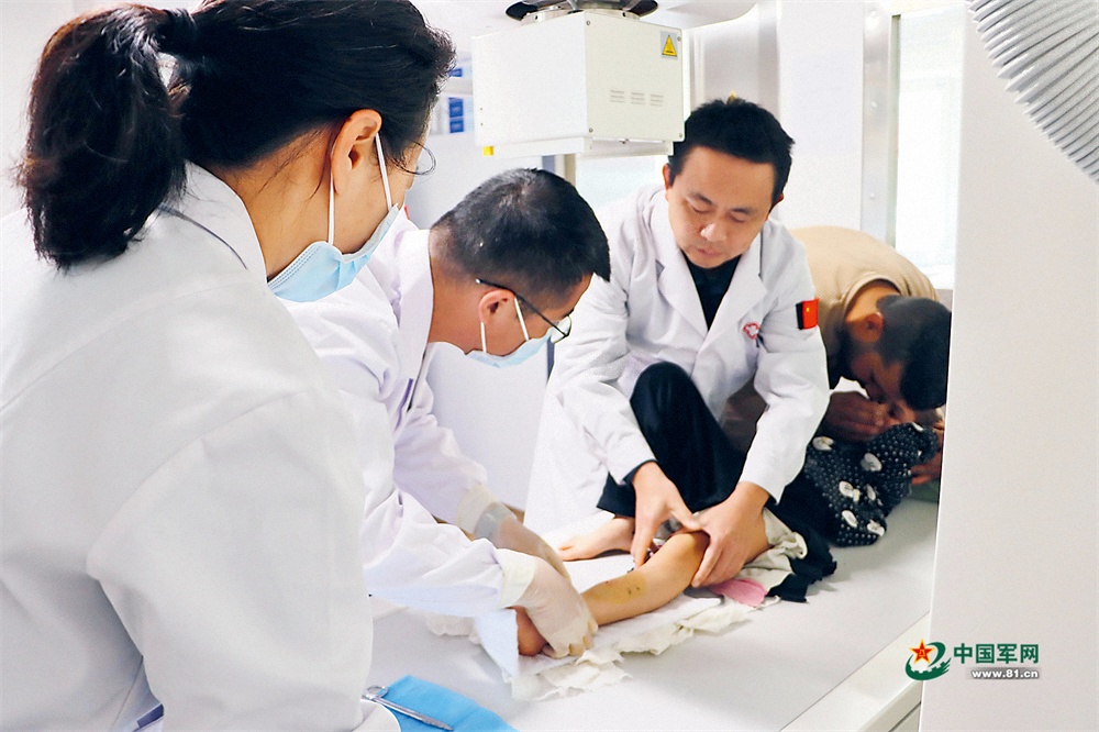 中國軍醫對小女孩進行診治。楊瑞鑫 攝