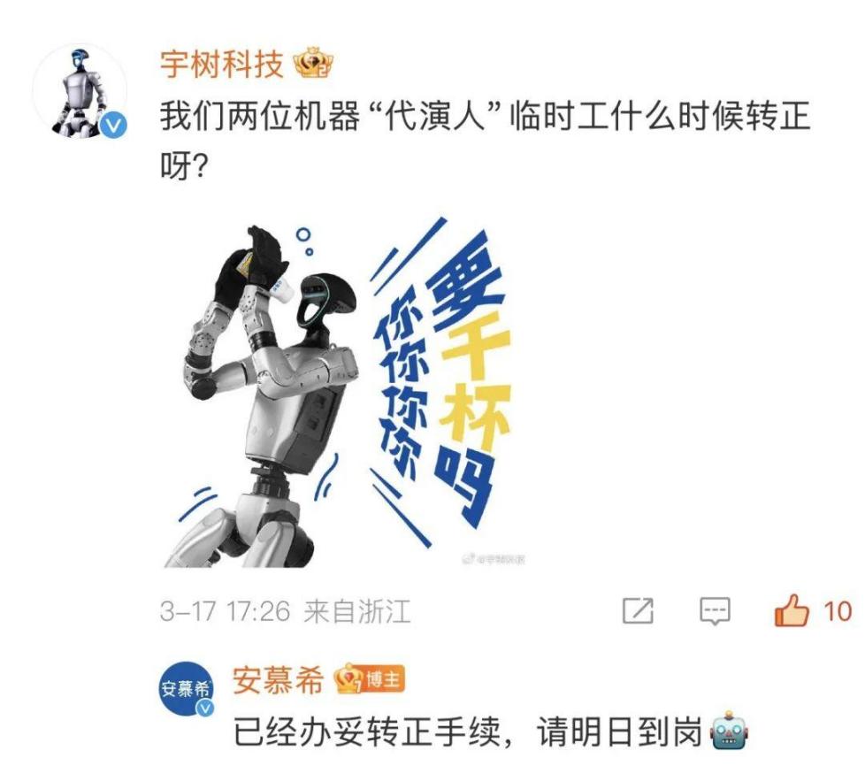 近日,來自宇樹的兩位機器人實習生在入職伊利後“官宣轉正”,正式成為伊利數智時代的“天選打工人”。