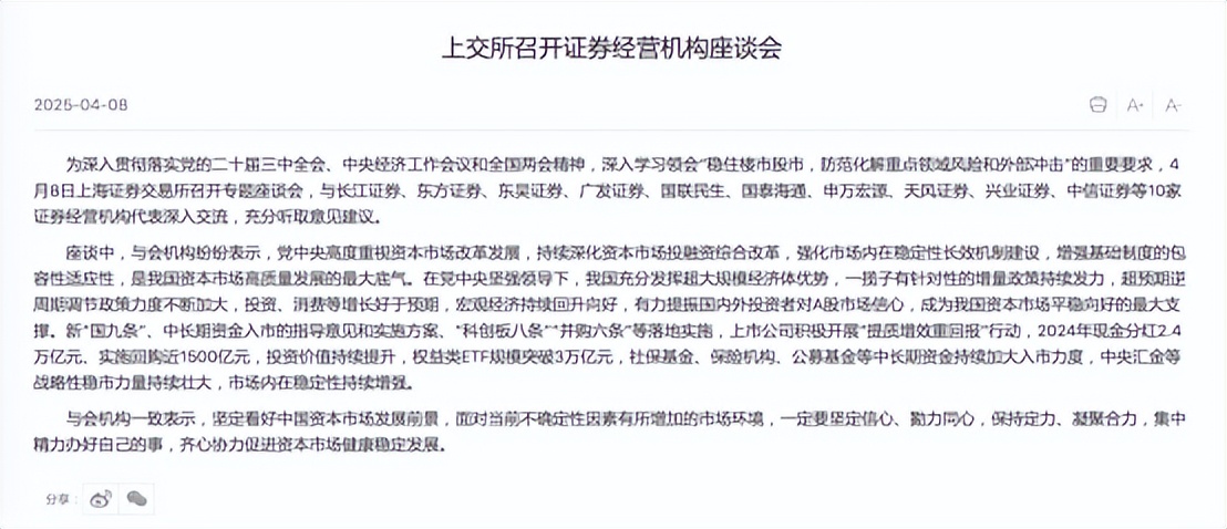 【環球網財經綜合報道】4月8日,上海證券交易所召開專題座談會,與長江證券、東方證券、東吳證券、廣發證券、國聯民生、國泰海通、申萬宏源、天風證券、興業證券、中信證券等10家證券經營機構代表進行了深入交流,充分聽取了各機構的意見建議。