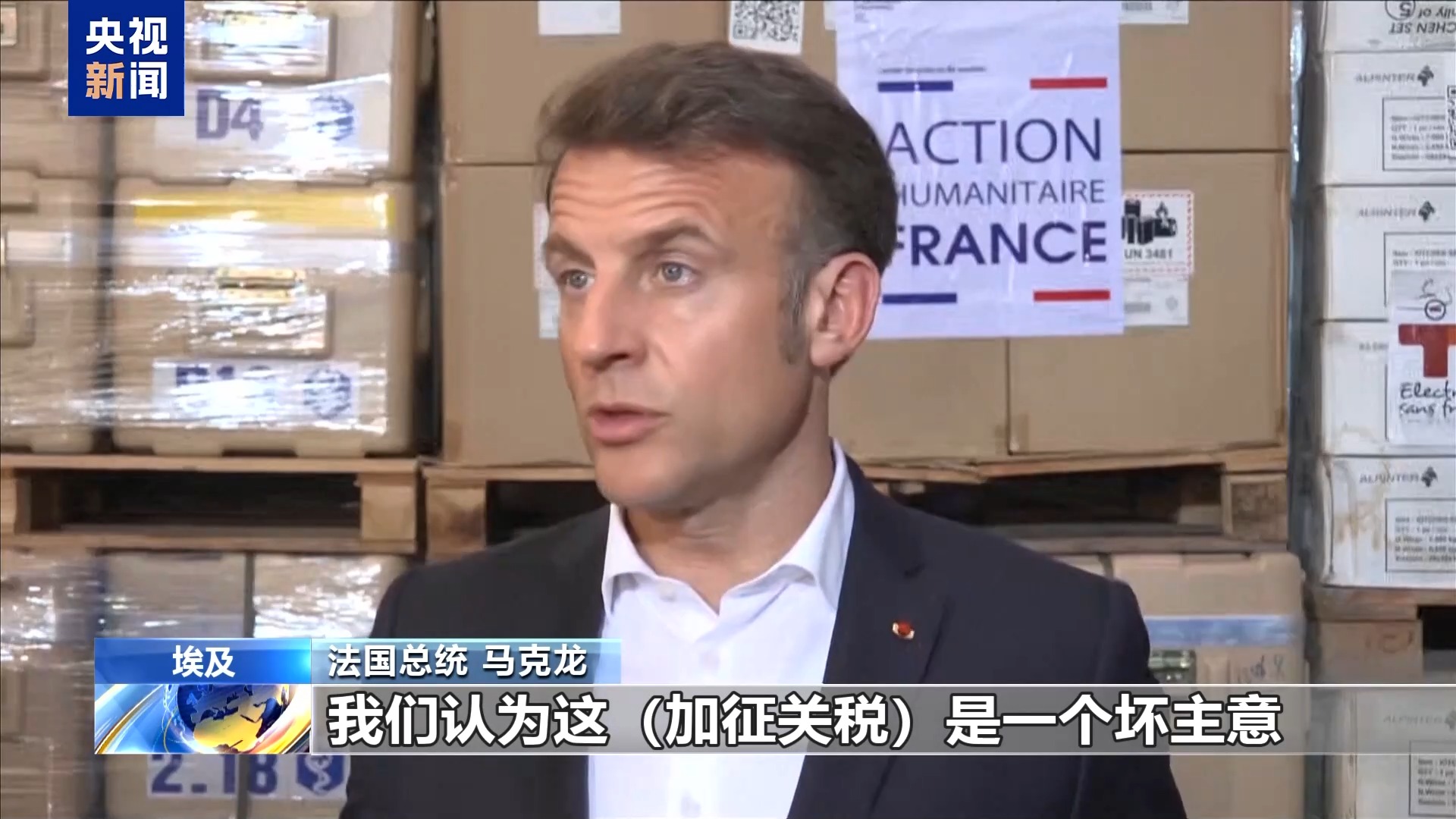 法國總統馬克龍8日在訪問埃及期間發表講話時對美國政府加徵關税予以譴責,並稱法國將採取措施進行反制。