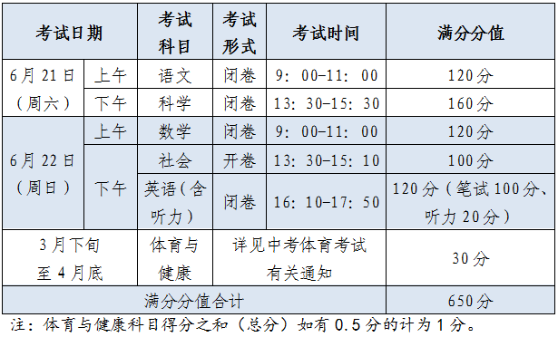 (二)中考包括文化課考試和體育考試。語文、數學、英語、科學、社會(含道德與法治、歷史與社會,下同)等5門科目採用省統一試題和分值。其中,社會2025年繼續開卷,2026年起閉卷。