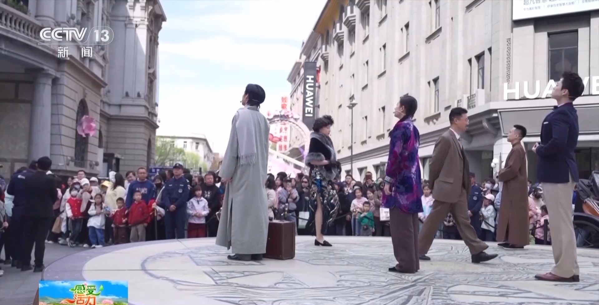 話劇舞台搬上步行街,整場戲雖然只有半個小時,但是卻讓賞花的遊客多了一種新體驗、新選擇。用現在最流行的説法來説,就是把“用户留存時間”延長了,把“用户體驗感”豐富了!別以為這是業餘表演,這些可都是來自天津人藝的專業演員。