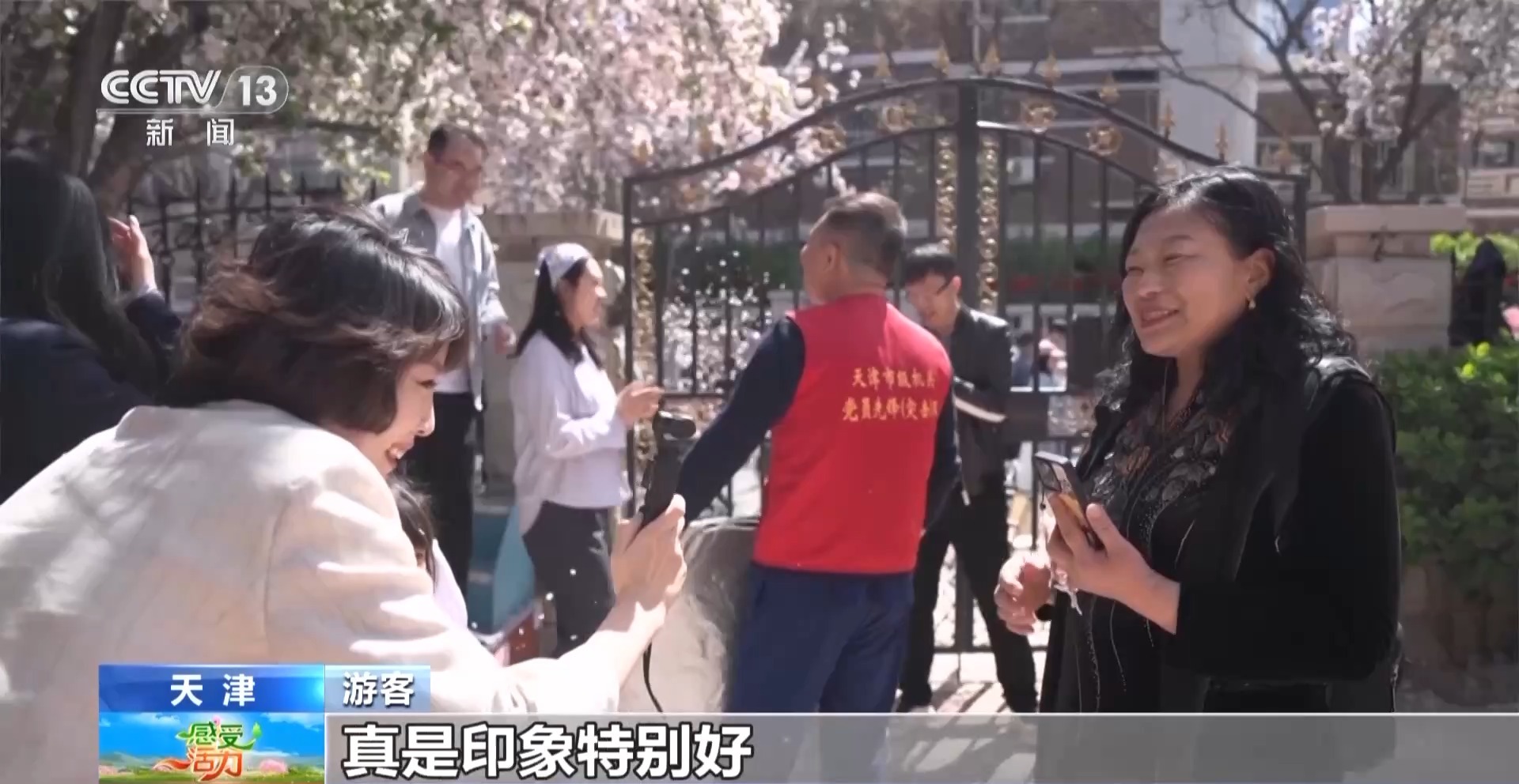 看看大家在網上發的評論:“我也去天津看花了!海棠好美好美,天津人也特別熱情,路上偶遇的天津小姐姐還主動跟我分享如何打卡拍出最美海棠花。”