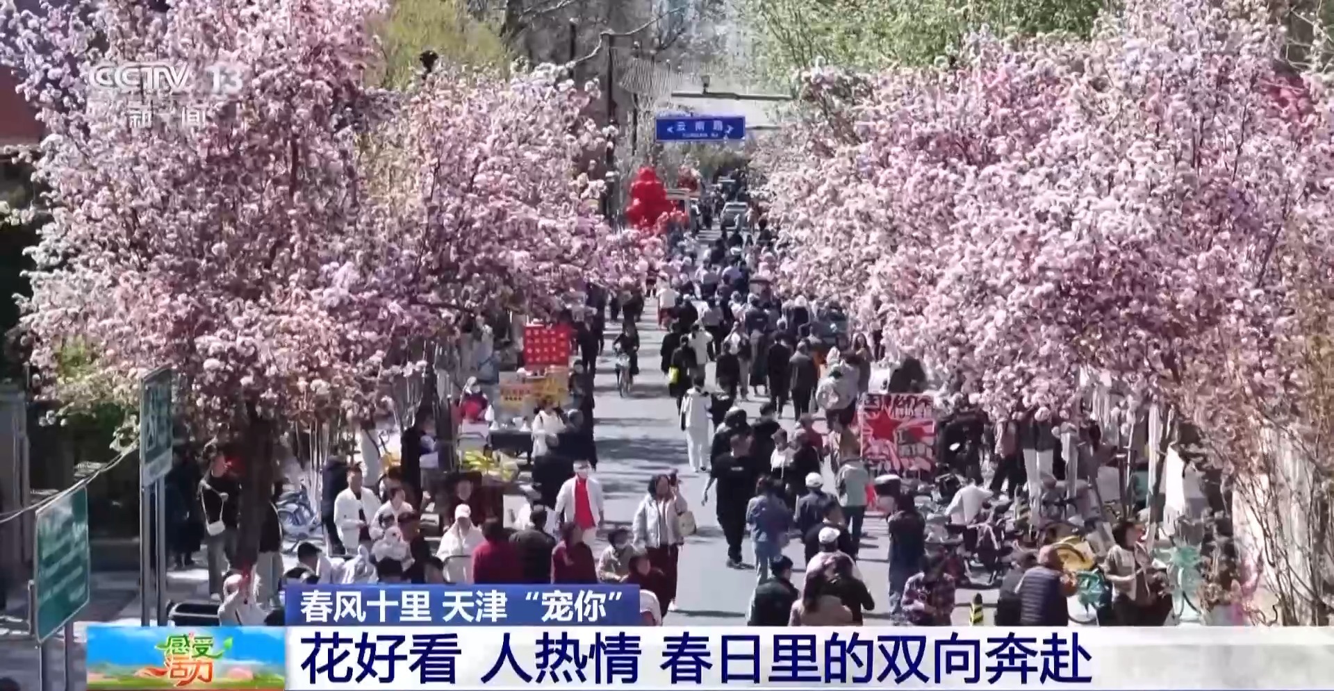 當交警為花期封路,志願者為你攢起花瓣,店鋪自掏腰包裝點街道,每一個細節,體現的都是天津的熱情與情懷。而無論是商家的用心,還是政府的搭台,抑或是來自每一個偶遇天津人的善意,滿眼春色、滿心歡喜,我們追逐的不只是花期,更是被一座城捧在手心的温暖和“寵愛”。