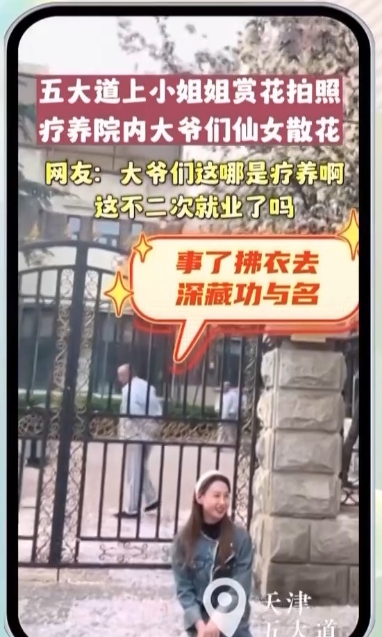 賞花、看花,還有天津大爺為你撒花,這情緒價值,真的是拉滿了!聽説這條視頻,就是在五大道上拍攝的,走,咱們去找大爺去!