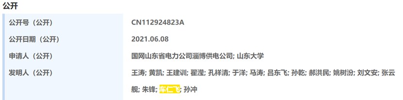根據國家知識產權局網站檢索,車仁飛在2020年9月還曾以發明人的身份,為山大電力申請過專利。隨後在2021年6月則以發明人的身份,為國網山東省電力公司淄博供電公司、山東大學申請過專利。考慮到國網山東省電力公司是山大電力的第一大客户,至於上述信息是否指向山大電力與大客户和山東大學存在研究人員共用,山大電力並未接受記者採訪。