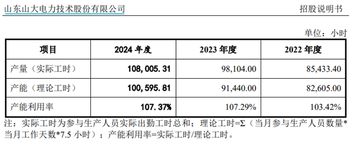 公開信息披露還顯示,公司以直接參與生產的人員工時數為標準,能更為客觀準確地反映公司產品的生產能力,理論工時=Σ(當月參與生產人員數量*當月工作天數*7.5小時)。招股書還披露,在2023年末和2024年末公司的生產人員人數分別為79人和89人,變動並不很大即便以較低的79人數量、每天工作7.5小時測算,達到全年108005.31小時的實際工時,也僅需要工作不到183天.