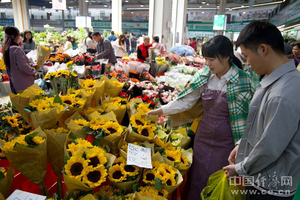 3月30日,雲南昆明斗南花卉市場,顧客在挑選鮮花。(中國經濟網記者 張晶/攝)