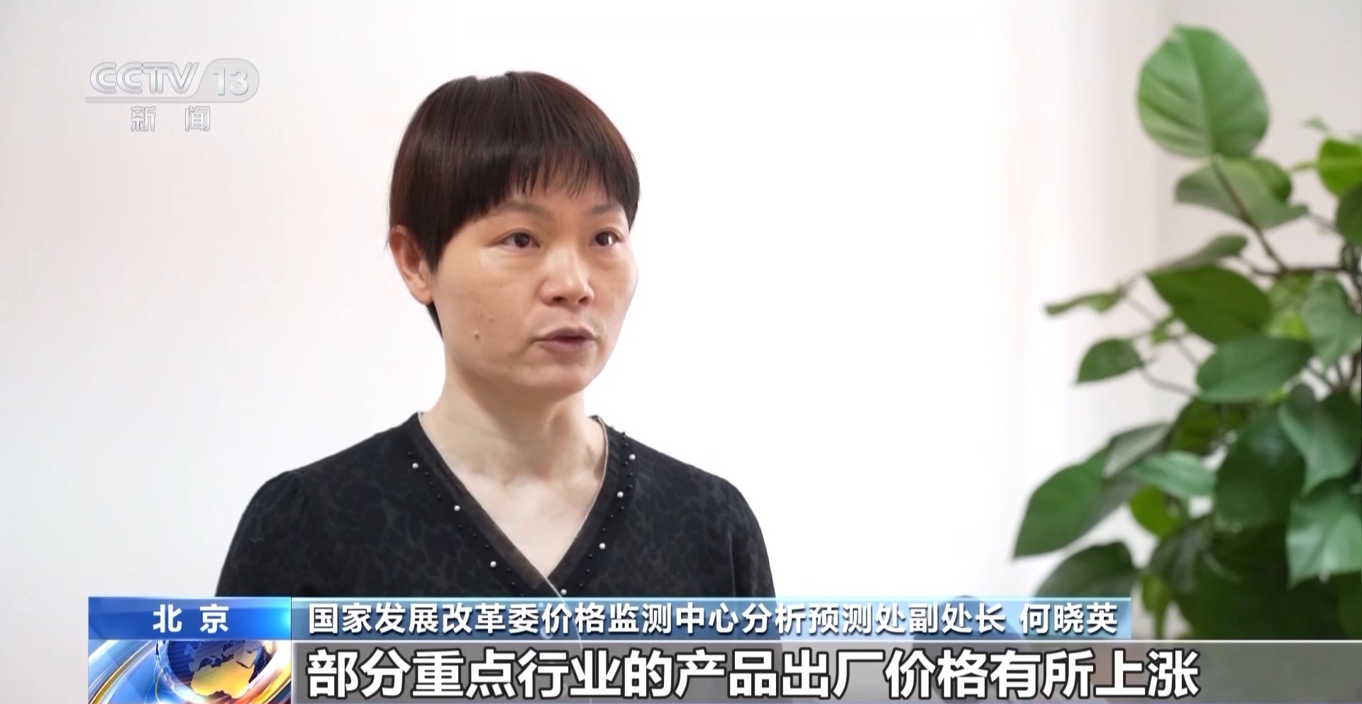 *國家發展改革委價格監測中心分析預測處副處長 何曉英:*部分重點行業的產品出廠價格有所上漲。像銅、鋁等有色金屬礦採選,冶煉和壓延加工業的產品出廠價格同比都明顯上漲,文體娛樂用品製造業的產品出廠價格同比也有所上漲。