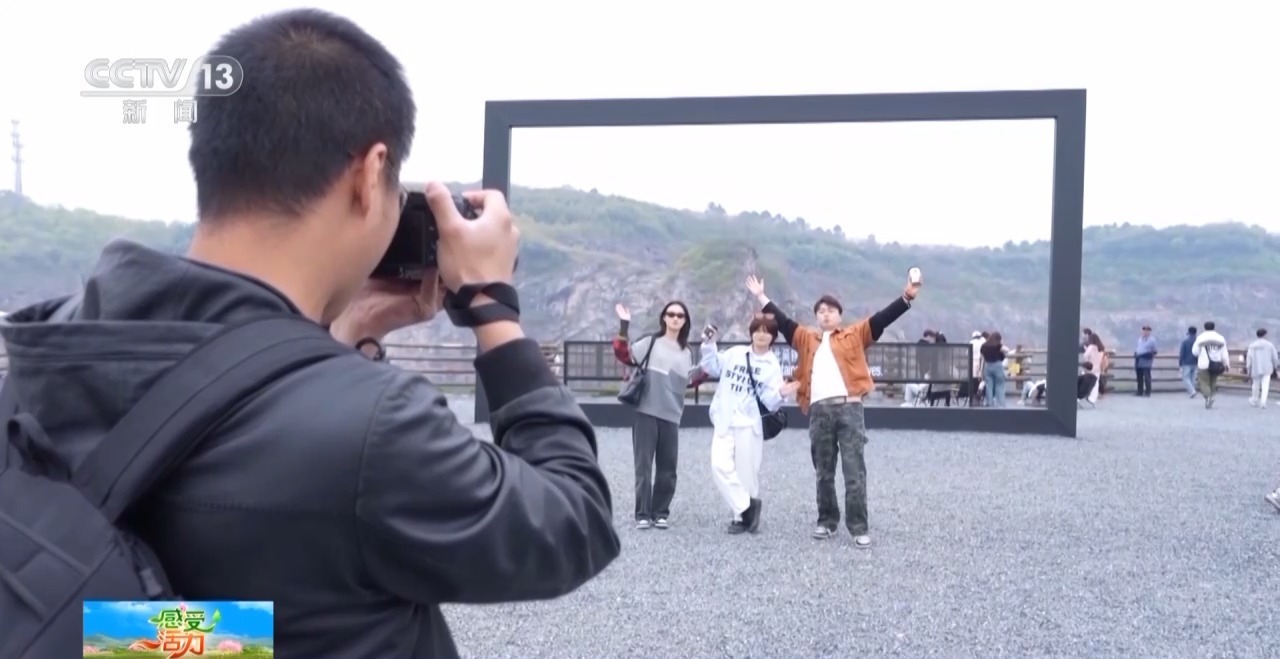 三年前,一個“90後”創業團隊來到這裏,在當地政府支持下,創業團隊以天然形成的湛藍色愛心湖為核心,保留了礦坑裸露的崖壁等原始風貌,將礦區原有的房屋改造成咖啡館,形成了一個將工業廢墟感和秀麗自然風光完美融合的景區。