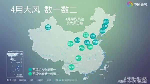 統計1991年至2020年大數據發現,常年4月本就是北方大部地區大風日數最多、平均風速最大的時期。