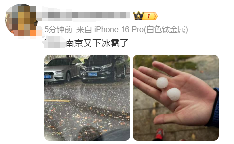 南京市氣象台2025年4月10日16時56分發布:根據最新觀測資料分析,未來3小時內棲霞、江寧東北部地區陰有陣雨或雷雨,雨量:5到10毫米,*並可能伴有雷暴大風及小冰雹等強對流天氣,*其他地區多雲,偏西風4到5級,氣温:六合23℃到19℃,其他地區28℃到23℃。