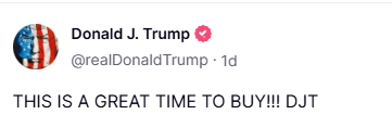 在此期間,特朗普在社交網絡上的發言引發軒然大波。據美國《紐約時報》報道,9日上午9時37分,特朗普在其創立的“真相社交”平台上發佈了一條全文為大寫英文字母的帖子:“這是買入的好時機!!!DJT。”(如圖)僅僅約4小時後,特朗普就宣佈了新的關税政策。據美聯社報道,“DJT”既是他本人全名的首字母縮寫,也是“真相社交”平台的母公司——特朗普媒體科技集團的股票代號。截至9日收盤,該集團股價上漲22.67%,遠遠跑贏大盤。特朗普在這家公司持股53%。面對前後如此巨大的變化,美國輿論界對特朗普本人及其關聯密切者提出質疑,懷疑他們通過操縱股市、進行內幕交易等不正當手段牟取暴利。