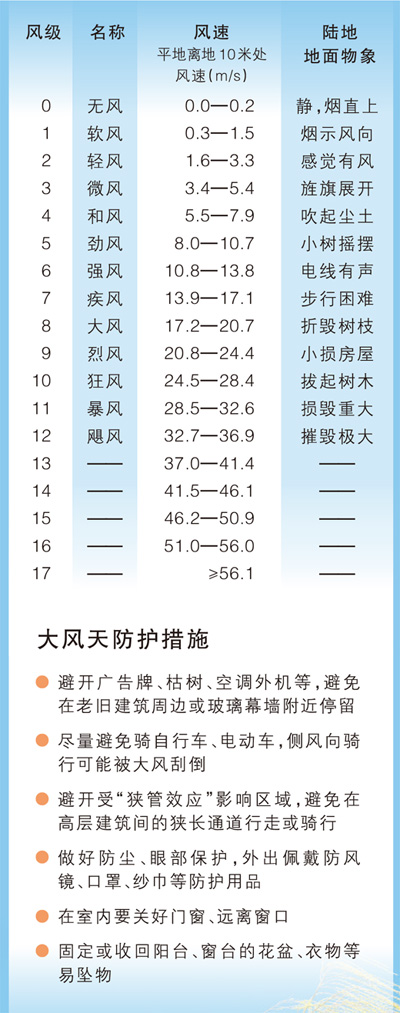 王秀榮建議,大風影響期間,如果在户外,公眾要遠離高大建築物、廣告牌、臨時搭建物、大樹等,避免被大風颳落物砸傷。駕車時要避開強風路段,避免強行通過。西北地區有揚沙、浮塵天氣,出門時注意佩戴護目鏡、口罩,保護眼睛和呼吸道。