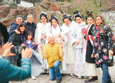 在美國紐約,同樣有一羣漢服文化的忠實粉絲。“今年是我們漢服社成立的第11個年頭。目前,漢服社微信羣已有近500名成員,主要是年齡在20歲至35歲之間的中國留學生及華僑華人新生代。”紐約漢服社社長明亮感嘆道,2016年,她加入社團之初,紐約當地瞭解漢服的人寥寥無幾,而如今,這一中華傳統服飾成功“出圈”,馬面裙等單品在當地華僑華人圈更可謂盡人皆知。