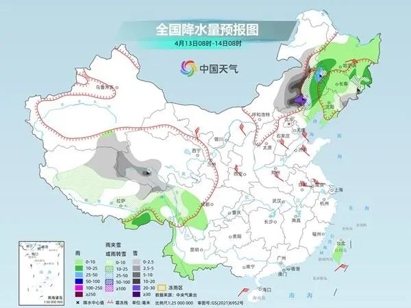 *中央氣象台4月11日06時發佈暴雪藍色預警:*預計4月11日08時至4月12日08時,內蒙古中東部、黑龍江西部、西藏東北部等地部分地區有大到暴雪,其中,內蒙古東北部等地局地有大暴雪(20~22毫米)。上述部分地區新增積雪深度5~10釐米,局地可達15釐米以上。