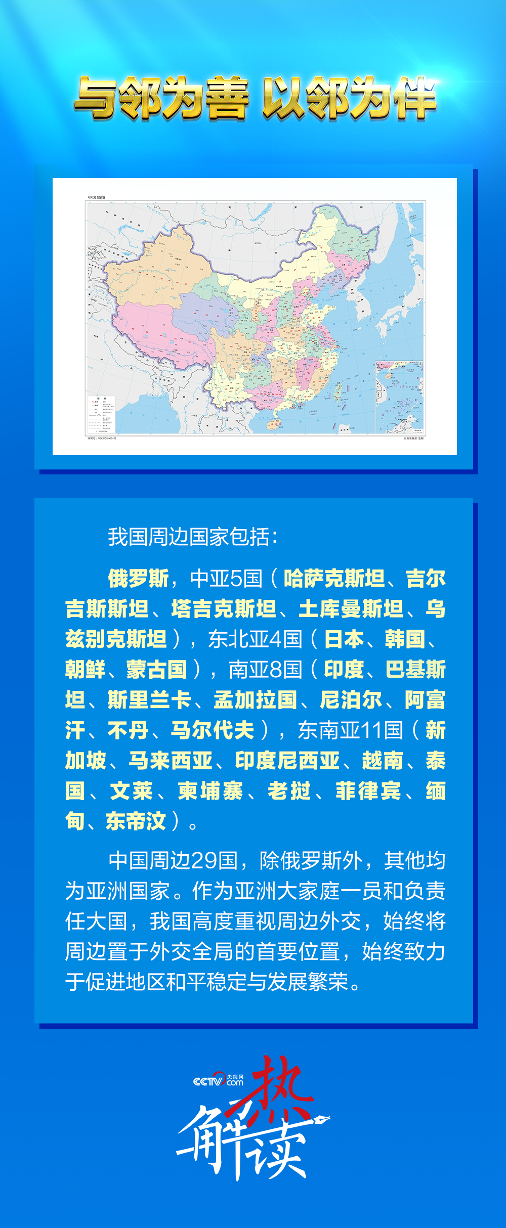 中國與周邊國家山水相連,人文相通,利益相融,命運與共。周邊國家在我國統籌國內國際兩個大局、發展和安全兩件大事中扮演着至關重要的角色。