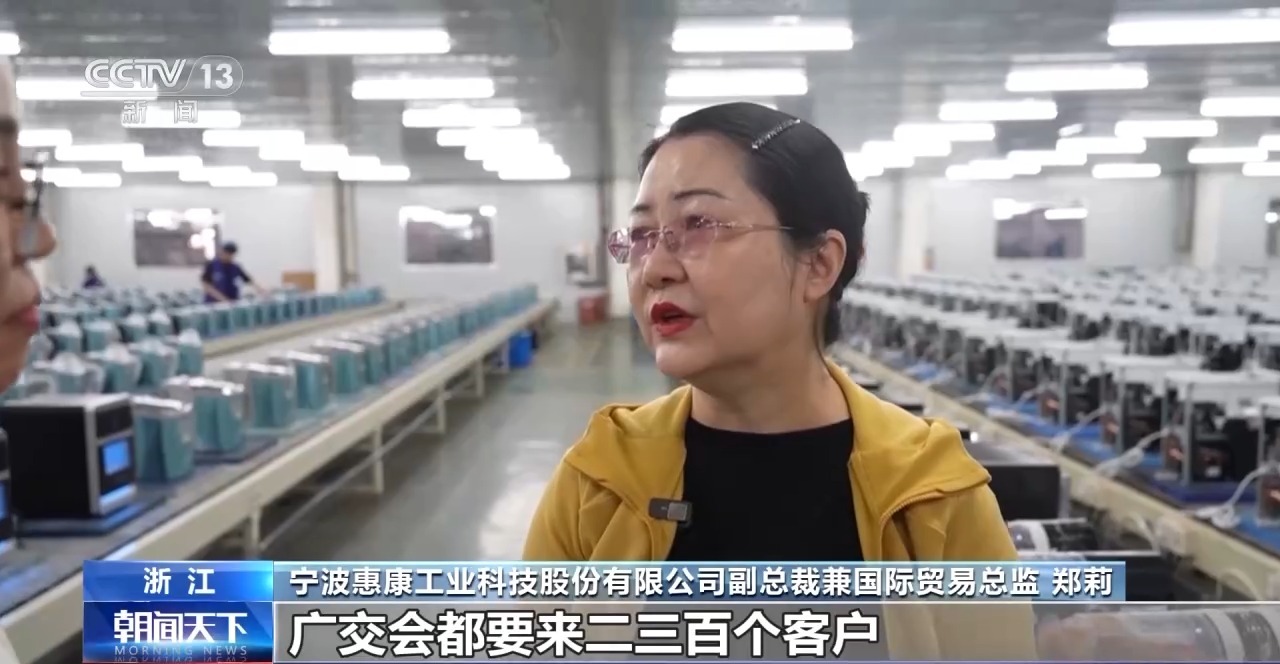*寧波惠康工業科技股份有限公司副總裁兼國際貿易總監 鄭莉:*海外客户都希望到廣交會來看新產品。我們每年實際上廣交會都要來兩三百個客户,今年像這種新產品預約的都有三四十個。