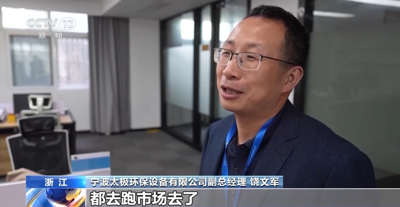 *寧波太極環保設備有限公司副總經理 饒文軍:*我們銷售人員都到全國、世界各地去了,都去跑市場去了。