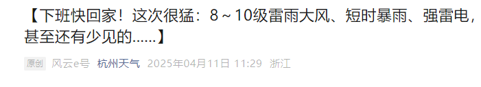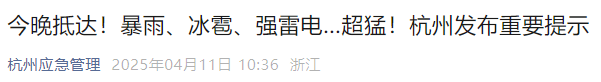 8-10級雷雨大風、短時暴雨、強雷電馬上殺到!杭州發佈重要提醒:今夜請緊閉門窗