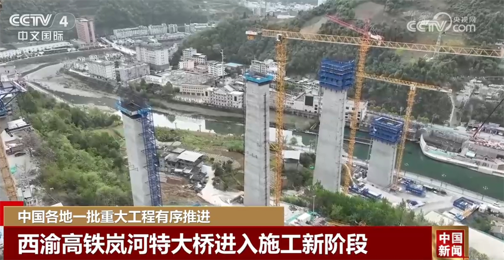 在陝西,位於安康市嵐皋縣的嵐河特大橋正式進入上部結構懸灌梁施工階段,該橋全長674.15米,最大跨度112米,其中最高墩高97米,是西渝高鐵陝西段全線最高墩。由於地處大巴山腹地,地形複雜,施工難度大。而西渝高鐵建成通車後,西安至重慶的出行時間將縮短3.5小時。