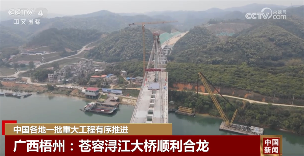 10日,廣西蒼容潯江大橋順利合龍,為蒼梧至容縣高速公路建成通車奠定了堅實基礎。接下來,工程將進入橋面鋪裝施工階段。該橋位於廣西梧州藤縣,全長1688米,採用中央獨塔設計,索塔全高108.9米,是目前世界在建最大跨徑獨柱式三塔空間纜懸索橋。