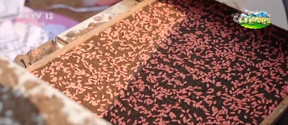這是鐵嶺市鐵嶺縣新台子鎮的一家水稻種植合作社,自動化育苗生產線正在快速運轉,一盤稻種不到10秒鐘就裝盤完成。隨後,種植户會將一個個育苗盤送入大棚裏進行催芽。育苗大棚裏裝有自動控温和噴灌系統,可以保證秧苗生長所需的温度和濕度,育出的秧苗壯實,抗逆性強,可減少病蟲害的發生,更利於機械化插秧。