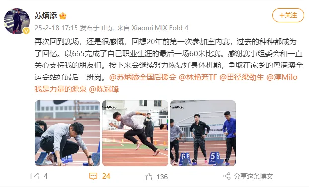 蘇炳添早已透露,自己將在2025年全運會後退役。