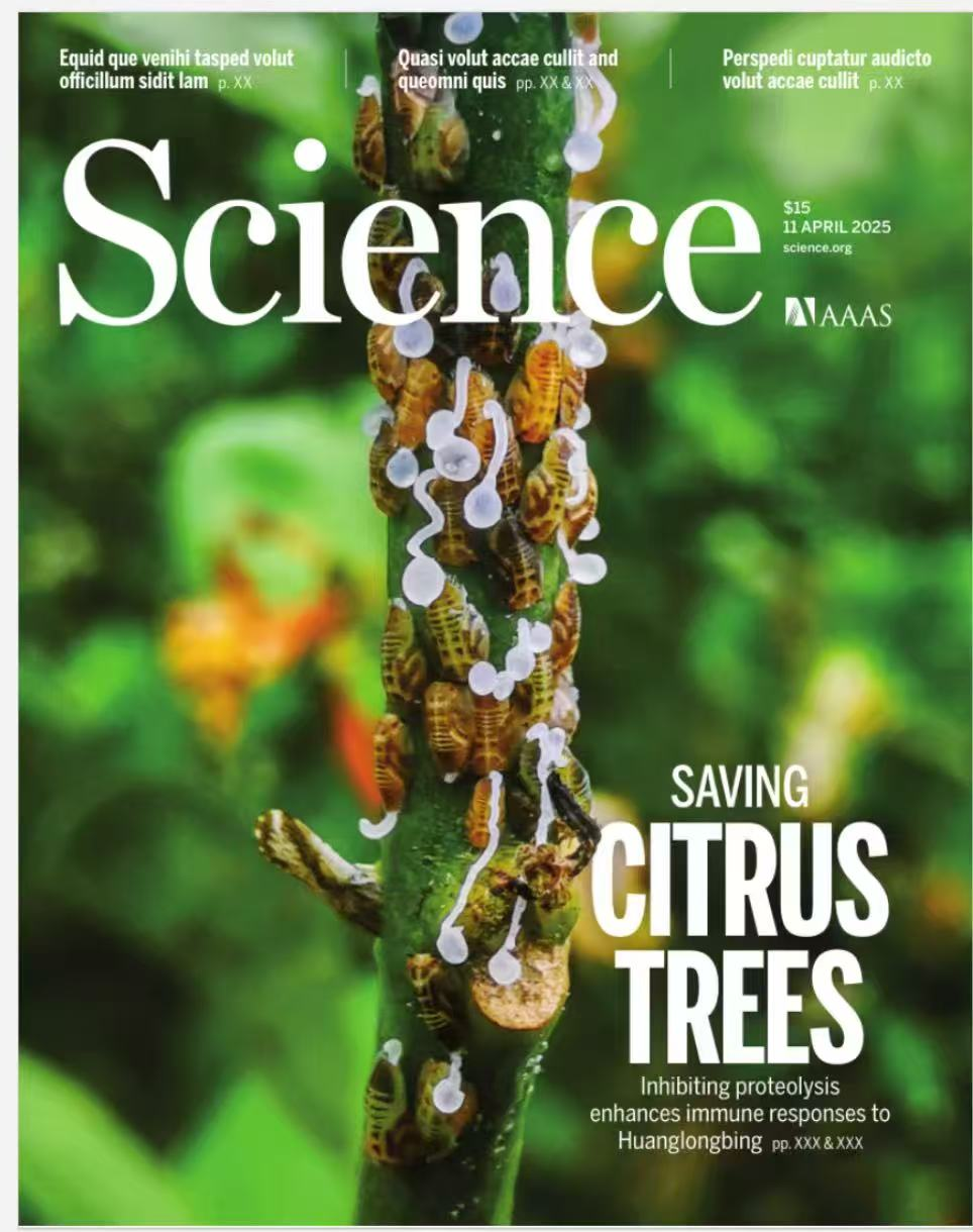 柑橘黃龍病被稱為“柑橘界的癌症”,這種由亞洲韌皮桿菌引發的毀滅性病害,已肆虐全球近50個國家,導致柑橘產業年均損失超百億美元。*近日,中國科學院微生物研究所研究團隊成功解析柑橘抗黃龍病核心分子機制,並利用人工智能技術篩選出可有效防控該病害的小肽。這項研究不僅破解了困擾國際農業界缺乏柑橘黃龍病抗性基因的科學難題,也為全球柑橘產業可持續發展提供了新的解決方案。*該項成果作為封面文章於2025年4月11日發表在《科學》上。