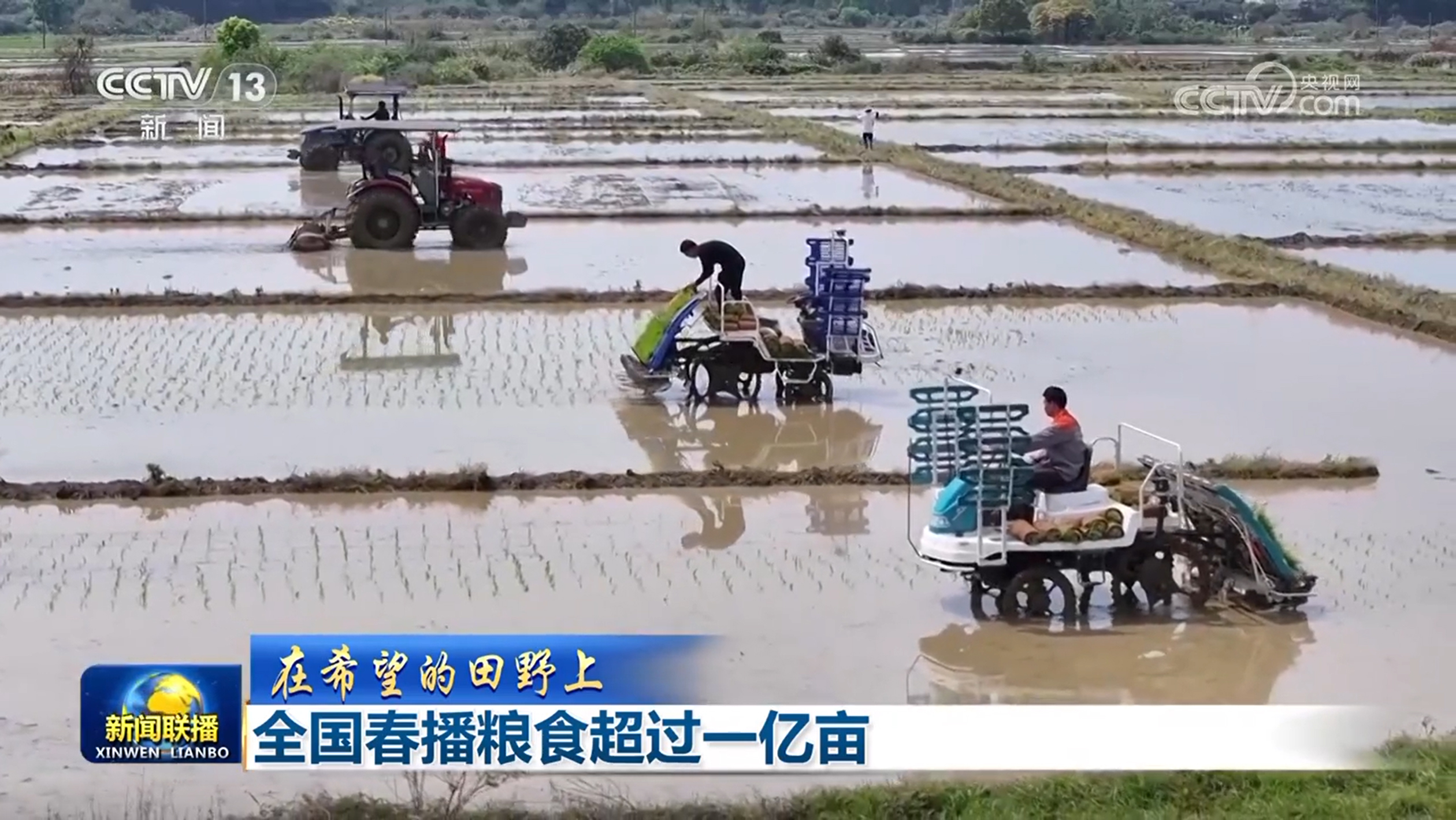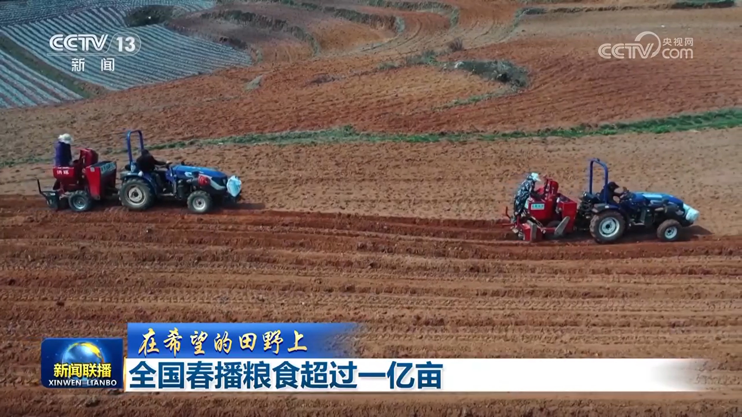 央視網消息 (新聞聯播):眼下,春播正由南向北有序推進,全國已春播糧食超過1億畝。
