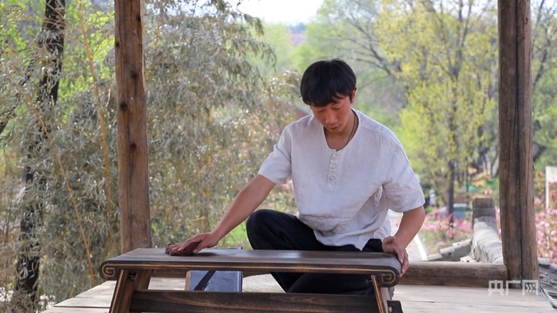 弋龍輝正在自家民宿擦拭琴桌(央廣網發 實習記者段懿庭 攝)