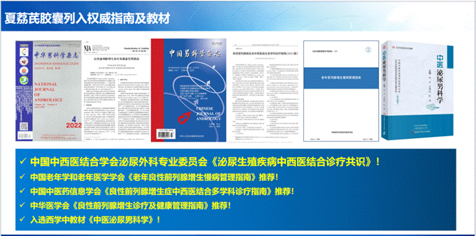 基於科學研究證據與臨牀實效,夏荔芪膠囊陸續被納入了2022版中華醫學會《良性前列腺增生診療及健康管理指南》、2022版中國中醫藥信息學會《良性前列腺增生症中西醫結合多學科診療指南》、2024版中國老年學和老年醫學學會《老年前列腺增生慢病管理指南》、西學中教材《中醫泌尿男科學》、中國中西醫結合學會泌尿外科專業委員會《泌尿生殖疾病中西醫結合診療共識》等多項權威指南與教材中。